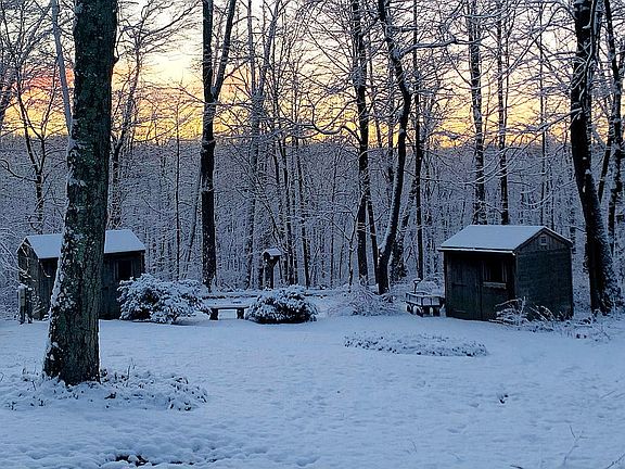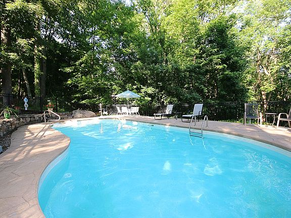 Exceptional value & park-like setting in this picturesque colonial featuring top quality construction and craftsmanship, set on 1 plus tranquil acre bordered by protected open space, yet just minutes from shopping, eateries, the Recreation Center, and all commuting routes. This low maintenance home will allow you time to enjoy the resort like backyard with heated in-ground pool and spa, tiered decks, stone patios and flowering gardens. Total 4 car garages including 2 attached and 2 detached in heated barn with second floor studio or home office. Completely updated with 2,661square feet (including 322 square foot studio); 3 bedroom 2 bathroom; hardwood floors; Anderson window/doors; central air conditioning; generator for main home/barn; and 3 finished floors including the walk-out lower level family room with second fireplace. Great layout, light, and flow with wide entry foyer leading to the dramatic 2 story living room, drenched in light with skylights plus wall of windows and French sliders to the adjacent Trex deck, and see through fireplace to the dining room with angled bay window and French slider to the deck. The main floor also features the updated kitchen with granite counters and Italian made metro shelving pantry, plus luxurious master bedroom suite with dressing room, custom closets, and totally updated spa-like bath with radiant heated floor and walk-in stone shower with Interaktiv shower system. Two additional spacious bedrooms on secnd floor with vaulted ceilings, ceiling fans, and totally updated bath featuring radiant heated Carrera marble floor. From the pool and spa it feels like your own Mediterranean hideaway with extensive decking, stonework, patios, and flowering gardens.