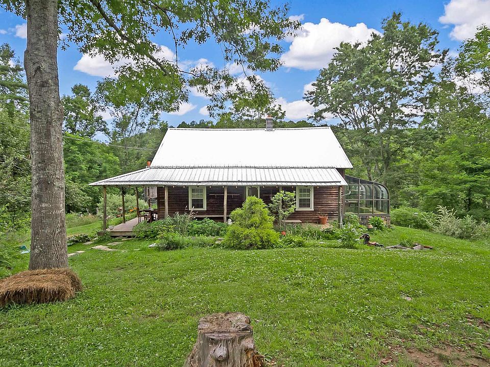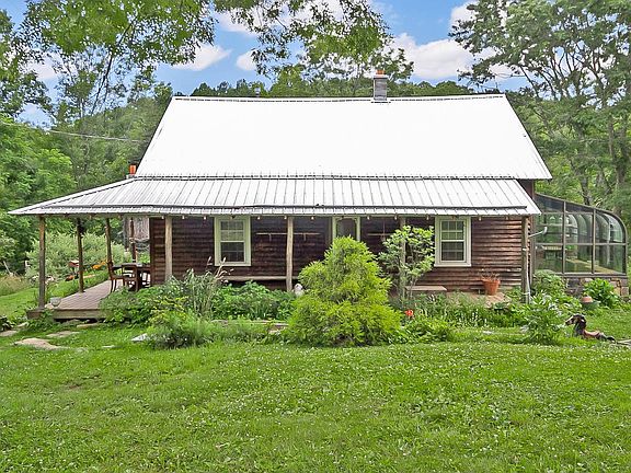 Privacy and Seclusion ! For the Nature Lover's out there, this quaint 3 BR 1 BA Farmhouse which is gently tucked away on 22.07 acres is a little piece of heaven . An abundance of wildlife, streams, springs, trails , hunting , gaming , gardening and more ! Inside you will find an abundance of living space . The main level with hardwood flooring, has a comfortable Living room with a wood burning stove, open kitchen with tons of cabinets and counter space , gas Stove , stainless steel appliances. Sunroom with glass roof feature, bedroom , office and full bathroom. Upper level has 2 bedrooms and storage . Relaxing covered front and back porches , 2 sheds, wooden carport for 2 cars or for your outdoor equipment. Newer metal roof . Central AC , Propane Furnace and outdoor Heatmor wood stove. Some TLC and this can be a great home or weekend retreat. As Is Where Is Sale . Come take a look !