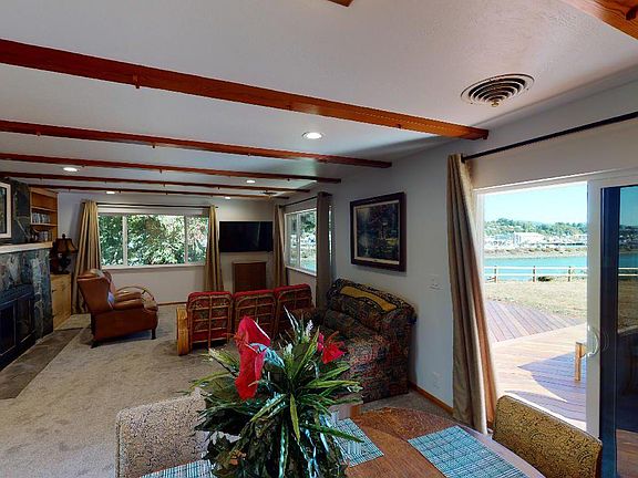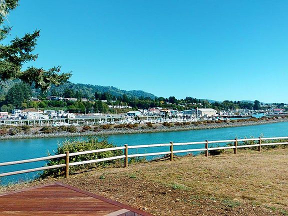 Chetco Riverfront home, with a gated park like setting! 1.28 private acres of pristine land right on the river! Incredible views of the Port of Brookings, the boat docks, and the Pacific Ocean! There are many recent upgrades to this home, INCLUDING: Roof, paved driveway, windows, doors, siding, heat pump, decking, gated, fencing, SS appliances, new flooring and much more! Three bedroom, 2 bath includes a shop that is perfect for boat or RV storage. Lots of parking too! Ask to see the 3D Tour!