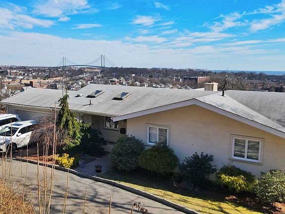 This beautiful home, situated in the prestigious, privately-gated Emerson Hill community, has unobstructed views of the Verrazano bridge and water to NJ from every level. This location will leave you wowed. Situated on a 10,200 sq. ft., street to street lot, once occupied by Ralph Waldo Emerson in 1901. Minutes to the bridge for easy NYC commute, walking distance to express bus stops and minutes to restaurants and local shopping. For the frequent traveler, an easy 20-minute ride to Newark Airport makes NJ commuting equally as easy. This move-in-ready home, with many upgrades is a rare find with excellent, additional, upside potential. First floor entry boasts living and dining space with unparalleled panoramic views, a custom peninsula wood-burning fireplace, brand-new, custom, American Walnut hardwood floors throughout, a full eat-in kitchen, pantry, garage access, a deck. Living space includes a master bedroom and in-suite bath, two additional bedrooms and a shared full bath. The lower level of this home has been renovated to include an additional bedroom and full bath, perfect for use as a mother-daughter or live in nanny; laundry room, office, custom mahogany wine cellar and kitchen on one side and an exercise studio, custom mahogany wood bar with granite top, sliding door access to either side of the home; including direct access to a heated in-ground swimming pool. Situated on a dead-end block which optimizes its privacy. This home has a two-car garage with ability to fit an additional 4 cars in the driveway. A total gem and a must-see - this will not last!