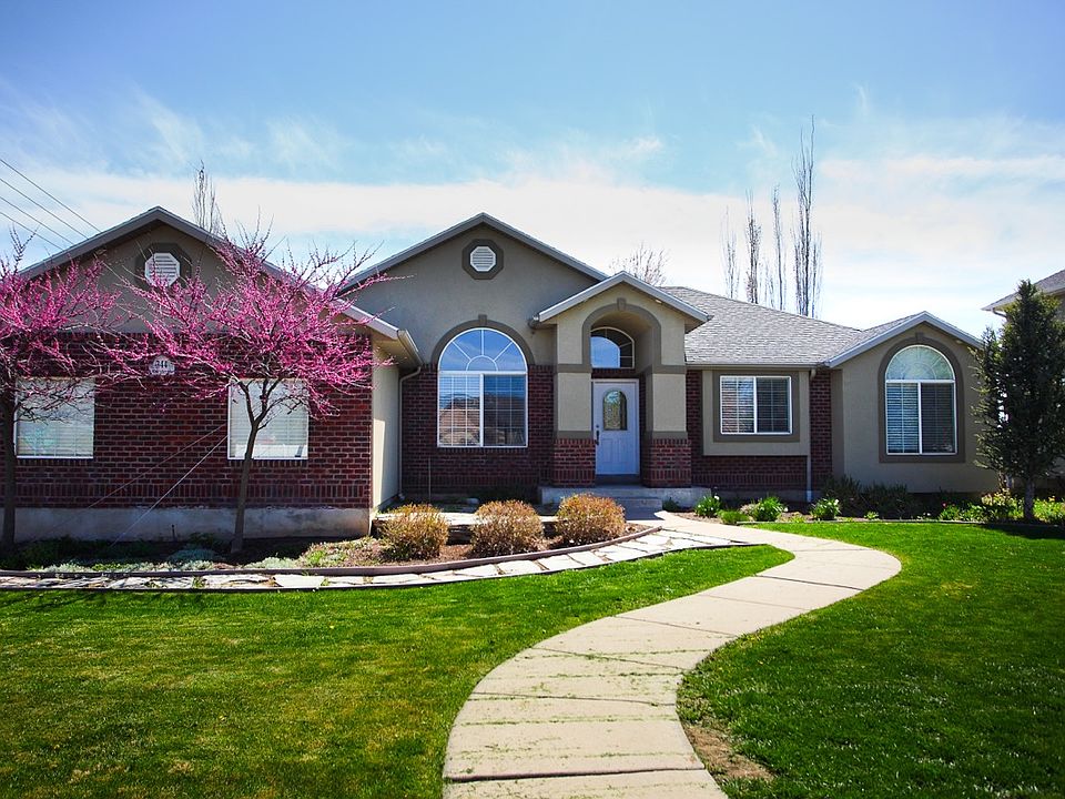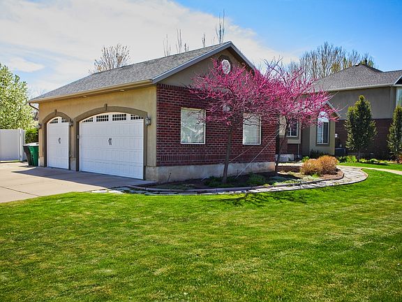 A home with an exterior style as tasteful and refined as the interior is a hard thing to find. But, walk up to this property's front door and it will immediately become obvious. With beautiful landscaping and thoughtful attention to detail, this home's curb appeal will delight onlookers driving by! As you step inside and you will be greeted with high vaulted ceilings and natural light spilling in from every direction, giving you the sense of grandness and warmth. To the left of the front door is a private office. Straight ahead, is the open living room area that is seamlessly attached to the kitchen and dining room, making this great room feel like the "heart" of the home. The up to date kitchen boasts ample cabinet space, double ovens, a center island with a bar top, and enough maneuvering space to be sure to impress the chef in your family! The master suite, located on the main floor, showcases it's size with a walk in closet and its' own separate bathroom. The Master suite hosts a double vanity, jetted tub, and an oversized shower. A laundry room and two more bedrooms grace the main floor with an additional bathroom to accommodate them. Walking downstairs brings you to the game room, equipped with a wet-bar and fireplace. Attached, is the second living room space that is perfect for hosting parties, or letting the kiddos play 5 games of twister at once! Two more large bedrooms are on this floor with a double vanity bathroom to service them. A large storage space with a 2nd set of washer and dryer hookups claim some of the real estate on this floor as well, creating the feeling that this level could be its' own spacious house! Walk out the back door and find two patios with hot tub hookups built in, a basketball court, a wide yard and beautiful trees that are all encased with a 6 foot privacy fence to keep the world out. This is a backyard that gives true definition to the word "epic"! This home won't last long. Come by and see it today!