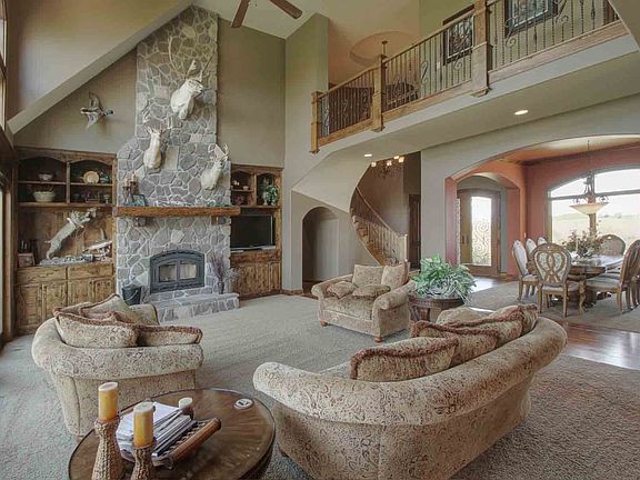 Inspects done & major repairs completed! STEAL OF A DEAL & NO GAS BILL on this 10 acre custom home backing to 20 acre common ground stocked lake. 6 car garage (3 heated) to store your toys. REPRODUCTION COST 1.7MIL!! 2 huge Masters & all bedrooms have own baths with granite & walk in showers! FREE NATURAL GAS on property. Custom finishes incl granite in kitchen & baths, beautiful walnut hardwoods, alder cabinets, stainless appl, double ovens, oversized kitchen refrig, pantry, custom..