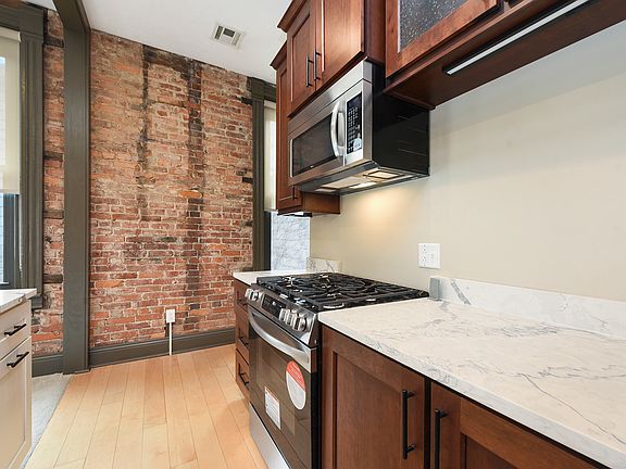 Massive 1 bedroom with a huge bonus office/bedroom/den and 1.5 bath apartment #3 in a historic building in the heart of Homestead's business district. Totally new renovation boasts exposed brick, high ceilings, new stainless steel appliances. One covered garage parking space included as well as a shared patio/courtyard space. There is only one other residential unit and a commercial space on the first floor of this building. Golden Age Brewing is right across the street as well as many other 8th Street restaurants and entertainment as well as the Homestead Waterfront. Laundry in unit. No pets. Tenant responsible for all utilities. Section 8 not available. 12 month lease. Tenant pays gas, electric, water, sewer, trash.