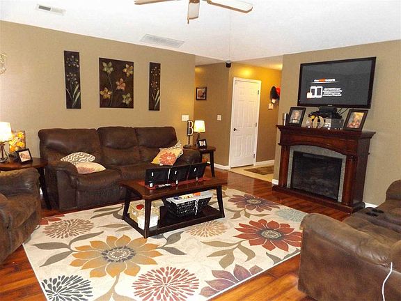 This 1427' sq. ft. single level, 3 bedroom, 2 bath home is move in ready. This home offers laminate and tile flooring throughout, with a spacious kitchen and eating area that ties into the living room, which includes an electric fireplace. This home offers a split design with the master suite opposite the other 2 bedrooms. Walking out the back door, you enter a screened in patio in the backyard, which offers a partially wooded area to enjoy the serenity and firepit. Being just down the street from walking trails, ball fields and a park, this is the perfect location and home.