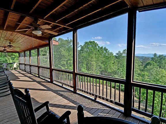 Gorgeous, well built cabin with granite, 3 large bedrooms, 3 full baths, laudry on main level, huge loft, 2 levels of screened porches, year round mountain view, hot tub, large closets, nice landscaping, covered parking (carport). This is a successful rental now, but would also make a great full time home.