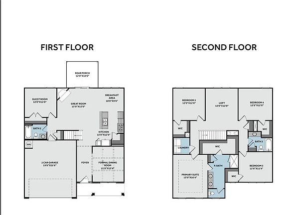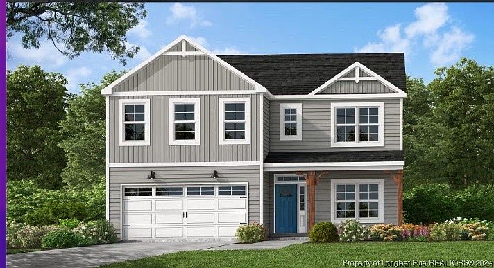 The Pamlico. Formal dining with coffered ceiling and wainscotting. Open kitchen, quartz countertops, natural stone mosaic backsplash, corner pantry, and breakfast area; SS microwave, D/W, and gas range. Great room with gas log fireplace and rear porch access. Guest room located on the 1st floor with hall access to full bath with vanity, and tub/shower combination. 2nd-floor primary suite. Primary bath with walk-in closet, dual sink vanity with shaker cabinets and center drawer stack, quartz countertop, linen closet, walk-in shower, private water closet, and tile flooring. 2nd-floor laundry room with W/D connections and lvp flooring. 3 additional BRs on 2nd floor with walk-in closets & hall access to full hall bathroom with vanity, tub/shower combination with linen closet, and lvp flooring. Open loft space on 2nd floor with hall linen closet! LVP in formal dining room, kitchen/breakfast area, great room, and half bath. Front door with transom window and single sidelight.