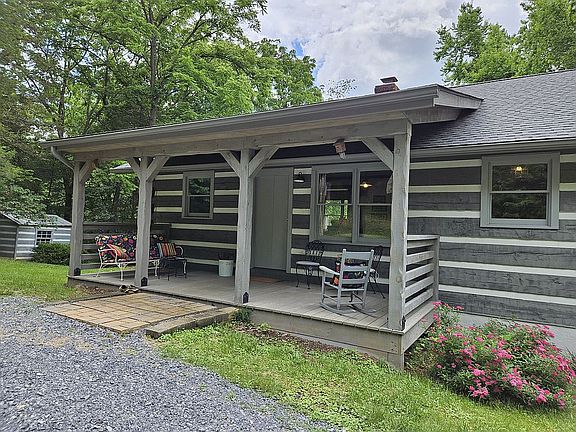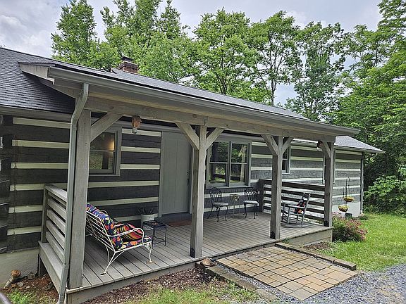 Nestled in the woods of the Shenandoah Valley on a quiet country road, this lovely log cabin with 1,610 sq ft of finished living space is only 25 minutes South of Front Royal. It offers a peaceful retreat for those who long to relax on their porches on summer nights and watch the fireflies dancing in the darkness after a gentle rain. The mornings bring birdsong to delight your soul and the fragrance of the woods is intoxicating. You might even see wild turkeys hiking over the hills into your forest (where Black Walnut trees, Wild Cherry trees, and Spicebush grow). In the Spring, the redbud trees display their fabulous hue. Enjoy privacy and so much more in this 3 bedroom 2.5 bath cabin on 3.14 acres. Need a den or office? A fourth room can provide that, with stunning views of the woods. The front porch, roof and gutters were replaced in 2021 on this Hearthstone log home that was built in 1990. Step from the 168 sq ft front porch through the front door onto solid pine floors of 5" planks, where the Kitchen/Diner, with its eating area, gas stove, and barnwood-finish cabinets and trim, opens to the Living Room. There, the fireplace provides a special ambience on chilly days. From the Living Room, walk onto the back porch, overlooking the woods. Three spacious bedrooms and both full baths are also accessible at ground level. If your hobbies leave you craving space to spread out your tools and supplies, you will love the spacious basement and its 250 sq ft finished room with half bath and its own outside access. When it's time to head to town, Luray is just 10 minutes away with its shops and gorgeous Hawksbill Greenway beckoning you. Be sure to make a stop at the Visitor's Center where local railway history is highlighted with a lovingly crafted train set that spans much of a large space. The legendary Shenandoah River and Shenandoah National Park are just a short distance away.