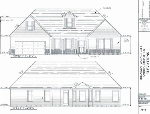 Currently under construction - As you enter this Aiken plan home you will notice it is a very spacious 1901 SF and very open. From its high vaulted ceiling in the great room to the adorable breakfast nook area for you to grab a bite before you head out to the office this plan is full of "little extras." You will enjoy the large master suite with the large walk-in closet and the optional tray ceiling. With 3 additional bedrooms this 4 bedroom 2 bath plan is sure to be loved for years. The outside of this home has curb appeal also. With the high peak roof and covered entry with optional stone front you will love all of the seasons in this home. Home is built on a crawlspace. situated on almost 3 acres.