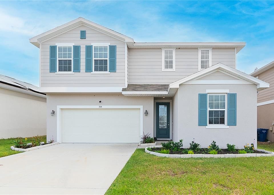 NEW PRICE! NO CARPET!! (except for the stairs) Come see this meticulously maintained, like-new home in a sought-after lakefront community. Why buy new when you can get this move-in ready home with all of its extras! The spacious Moonstone floorplan by Richmond American, built in 2021, offers 2,944 sq ft of living space with 5 bedrooms, a den/office and 2.5 bathrooms. All bedrooms are on the second floor for added privacy, while the first floor features a versatile office/den, ideal for remote work or study. Upon entering, you'll be greeted by luxury vinyl plank flooring throughout the main level. The expansive kitchen is a chef’s dream, featuring a large quartz island, GE stainless steel appliances, and abundant cabinetry. The family room is a standout, with custom-built storage cabinets, shelving, and a cozy electric fireplace, which can be controlled remotely for added convenience. A mudroom off the garage offers practical organization for your everyday needs. Upstairs, the primary bedroom suite features a luxurious custom-designed California Closets® walk-in closet, while the ensuite bath offers a serene retreat. The four additional bedrooms share a full bathroom, and a second-floor laundry room provides easy access for the whole family. The private backyard includes a fenced yard, covered patio, and no homes directly behind for added seclusion. Pet lovers will appreciate the custom "dog room" under the stairs for their furry friends. Additional features include garage hanging storage and a low HOA with no CDD fees. Enjoy the community’s lakefront setting with a fishing pier for outdoor recreation. Located in Winter Haven, this home offers easy access to shopping, schools, dining, and attractions like Legoland and Peppa Pig Theme Park, all within 10 miles. If you're seeking a move-in-ready, thoughtfully designed home in a prime location, this is it!