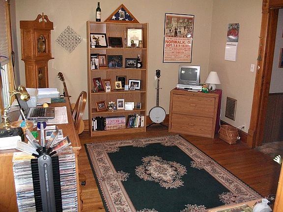 Walk-in closets in all bedrooms. Open floor plan featuring exquisite natural woodwork, beautiful open staircase and hardwood floors throughout (many covered by tasteful carpeting). Modern eat-in kitchen, plus a formal dining room. Huge jetted bathtub and walk-in shower. Main floor laundry. Need a fourth bedroom? The walk-up attic awaits. All new windows. Located on a shady corner lot two block from the golf course, swimming pool and park. The custom window coverings are worth thousands. Come look and you'll come away the new owner!