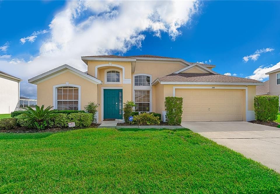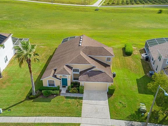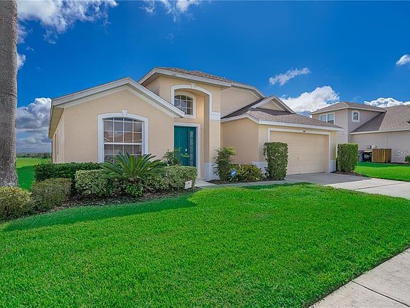 Upon entering you will find a tastefully furnished home with a living area followed by a large dining/family room open to the kitchen breakfast bar. Eating space in the kitchen overlooks the pool and the beautiful view of open fields with no direct rear neighbors. If you're an early riser, you can catch the beautiful sunrise. The downstairs master is handicap accessible, has a king bed, wall mounted TV, walk in closet with additional owners closet. Master bath has dual sinks, huge shower and ceramic tile flooring. There is a second ensuite on the first floor, queen bed, walk in closet, TV and laminate flooring. 2 other first floor bedrooms share a full bath, both have twin beds TV's and laminate flooring. The second level is an ensuite with king bed, TV, laminate flooring and walk in closet. Games room in the garage with pool table and air hockey. Inside utility with new washer and dryer. Recent upgrades, quartz counters in the kitchen, new doors with built in blinds to the pool, new AC unit with Nest control. Cameras on front door, above garage, down both sides and the back door.