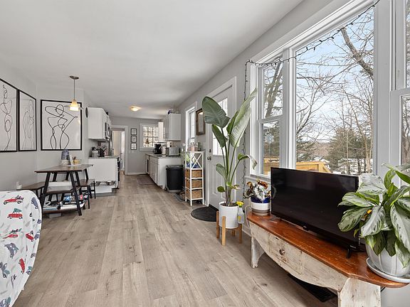 Nestled in the serene confines of Wilder, VT, this charming 3-bedroom, 1-bathroom abode exudes tranquility on a quiet dead-end street with friendly neighbors. Step through the inviting covered front porch to discover a delightful interior adorned with beautiful hardwood flooring. The updated kitchen boasts stainless steel appliances, new flooring, and countertops, seamlessly flowing into the bright and airy living and dining area, perfect for gatherings. Down the hallway, discover three bedrooms, including a spacious master with ample closet storage, while one bedroom currently serves as a versatile walk-in closet. The centrally located full bathroom features a tub-shower and newer sink, providing convenience for all occupants. Descend to the lower level to find a cozy living or family room with direct access to the backyard, ideal for entertaining. The expansive space offers versatility and leads to an unfinished basement housing the washer, dryer, and additional storage. Outside, the fully fenced yard features garden beds and a large carport storage. Enjoy easy access to Kilowatt Park, river swimming, and scenic trails, as well as proximity to both I-89 and I-91, ensuring convenience and connectivity. Experience the epitome of comfort and convenience in this unique Wilder retreat.