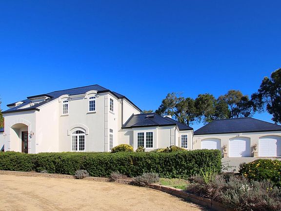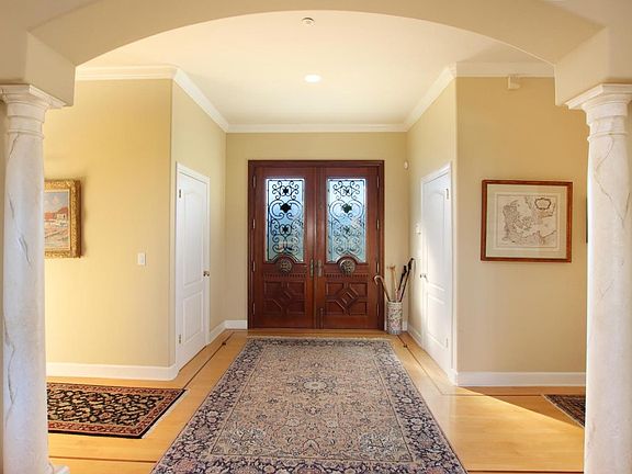 Approx .2 miles up a private road w/ spectacular mountain & bay views, this fabulous 5 bed, 4.5 bath, French-style estate sits atop 2.5 bucolic acres w/ mature landscaping, pond, waterfall feature, beautifully terraced landings, & meandering walkways. A custom mahogany door leads to 4,321 Sq Ft of refined living w/ elegant 10' ceilings, traditional crown molding, separate living, dining & family rooms, & a grand staircase w/ custom brass & iron railings. A gourmet kitchen awaits w/ granite counters, center island w/ sink, large pantry, & top-tier stainless appliances, including a Samsung smart refrigerator & an industrial 6-burner gas stove + ovens by Viking. The generous ground-floor primary suite affords breathtaking views of the surrounding hills across the back patio. Extra parking for your RV or other toys, Kinetico water filtration system, & superb Tesla Solar roof w/ 5 power walls! Great commute locale with plenty of outdoor spaces & ocean views to capture the imagination.