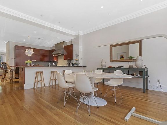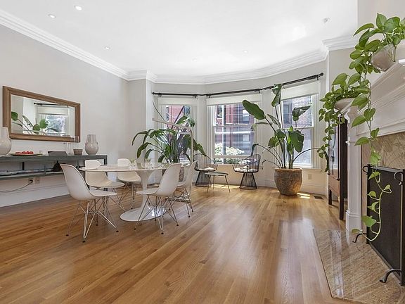 Classic brownstone w/ 2 parking spaces on picturesque Marlborough Street. This 4+ BR single family features the quintessential Back Bay entrance; gated wrought iron fence, past beautiful flowerings, to stately double doors. Spacious living room w/ custom built-ins surround the fireplace, bow window, towering ceiling height & an exquisite staircase. A 1/2 bath & double coat closets adjoin the kitchen, which is complete w/ custom cabinets, Wolff appliances, granite counters & island/breakfast bar. This functional space flows to an elegant dining room w/ 3 oversized windows. The master features large closet, a spa-like bath w/ walk-in shower, separate tub & sauna. Front facing 2nd BR, complete with floor-to-ceiling closets & ensuite bath. The 3rd floor consists of 2 bdrms, a full bathroom & the solarium; the ultimate entertaining area. A wall of windows with views of Boston's iconic Prudential Tower & deck, complete this space. Finished lower level with washer/dryer & office/gym/storage.