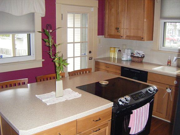 - Kitchen Features: Wood Cabinets, Laminate Floor, Island