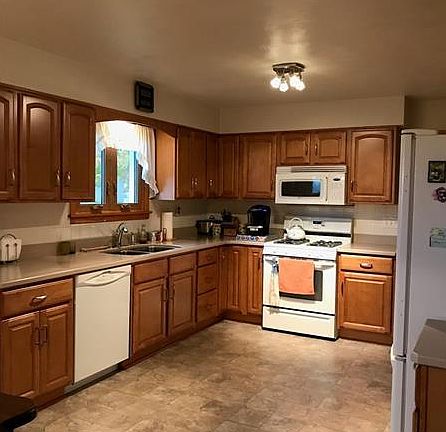 If you want a ready to move in home look no further! This is show stopper! Gorgeous 3 bedroom, 1.5 bath will have you wanting to call it home in no time. Ranch style house, 3 bedrooms and full bath upstairs. Plenty of closet space. Foyer going into living room from front door with sliding closet. Finished basement has living room, fruit cellar, work out room, possible bedroom, half bath, laundry room and work area. Back yard has detached shed and concrete patio leading out from the garage door. Finished Basement. 1.58 acres. Part brick and vinyl siding. 2 1/2 car garage. Shed in back yard. 3 bedroom and 1.5 bath (half bath in basement, was added last year). New windows, kitchen, furnace, a/c and hot water tank (all done in last 5-10 years). Wood burning furnace. Kitchen appliances stay (stove, refrigerator and microwave that is above stove, dish washer, all new when kitchen was redone). Under carpet is gorgeous hard wood floors. City water and sewer.