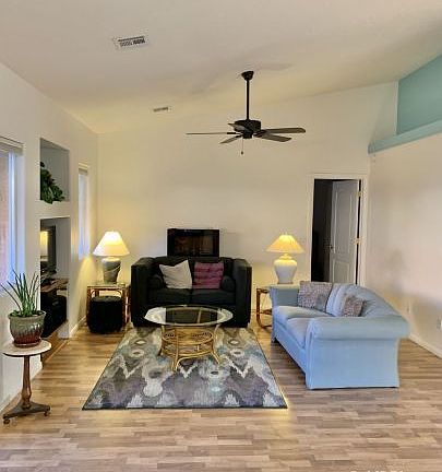 This Grapevine villa is immaculate and has been lovingly cared forby the original owner. It is ready for you to move right in (turn-key package available)! At 1360 sf, this is one of the largest units in this popular development. This beauty was recently painted inside and outside. You will love the floors which include very nice laminate in the major living area. The open concept living area provides plenty of space for entertaining friends and family. The kitchen slider opens to a beautiful oasis in the backyard.The extended patio with a pergola provides a perfect setting to view your lovely landscaped backyard. The large master bedroom, with en suite, provides plenty of room for relaxation. Enjoy the views of your backyard oasis from the large picture window. There is a large guest room at the front of the home. The second full bath is located just outside the bedroom door. Across the hall is a third room that can be used as an office, den, or home schooling space. There is a separate laundry area. The two car garage has plenty of cabinets for storage. A must see home to add to your list. Professional photos to be added by 10/16/2020.