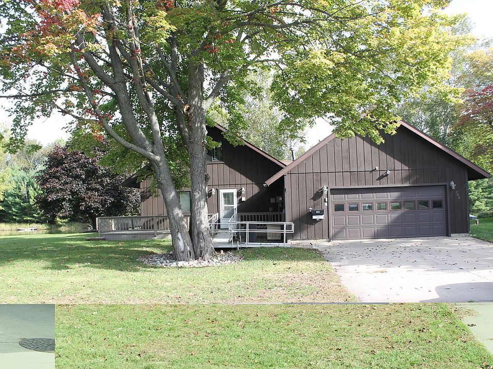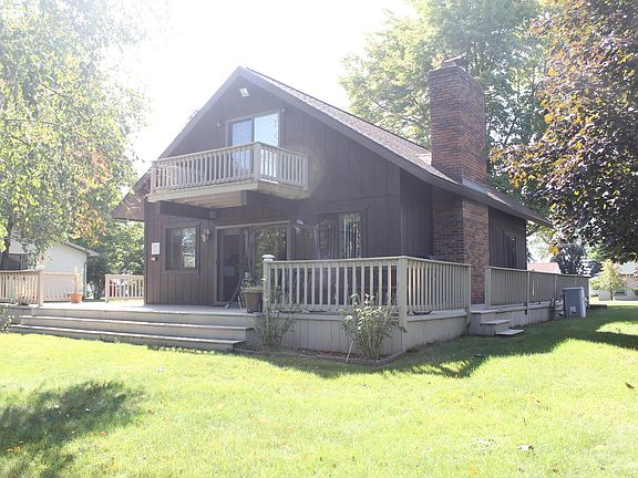 Chalet style home on 200ft of canal front offering scenic views from the Living room, Dining room and Kitchen! Lower level has a large bedroom with canal views, full bath and a Fireplace for Michigan winters. The 24x24 garage is heated and holds the Furnace, Hot water tank and Washer & Dryer. The deck wraps around most of the home perfect for entertaining. Upstairs hold 2 large bedrooms with a half bath in between. One bedroom has a slider leading to a private balcony overlooking the canal. Home also comes with Central Air, Home Generator and a large Shed. So many possibilities here, come make it your own!