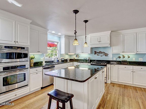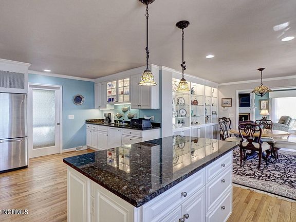Welcome to boaters paradise! This brick home sits on almost an acre of land among what is arguably the best stretch of ICW in southeastern NC. No wake zone, no flood insurance required, deep water at all tides, & a short pier with dock, making it a boater's dream with quick access to the Topsail Island beaches! The 4 bed, 3.5 bath home features a renovated kitchen featuring a center island & butler's pantry, granite counters, white cabinetry with roll out shelves, & stainless appliances including gas range/oven, double wall ovens, dual dishwashers & dual refrigerators. Oak flooring runs throughout the living areas, kitchen & upstairs bedrooms. Additionally on the main floor is a bedroom with private full bath and a laundry room with utility sink. Upstairs you'll find the owner's suite with private bath and expansive views of the ICW, as well as two additional bedrooms with shared jack & jill bathroom. Other features include a newer roof & upstairs HVAC. Optional memberships available for the Olde Point Golf & Tennis Memberships. No mandatory HOA dues.