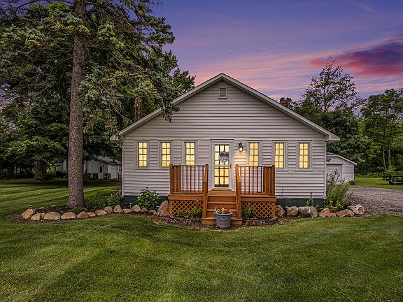Discover the perfect blend of country charm and town convenience with this delightful 3-bedroom, 1-bath home nestled on 2.59 acres. Boasting a spacious 28x24 climate controlled pole barn with 100amp service and a single car garage, this property offers ample storage and workspace for all your needs. The backyard is serene, surrounded by trees that provide both privacy and a picturesque setting, completed by the underground sprinkler system. Step inside to find an updated kitchen featuring new countertops, and a renovated bathroom. Enjoy the durability of new flooring throughout the home. With a new roof installed in 2017, you can rest easy knowing this home is well-maintained and move-in ready. Call today for a personal showing!