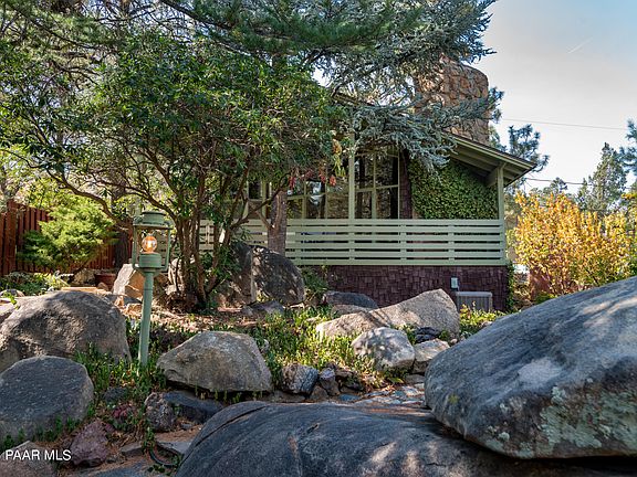 Dreaming of living in a cozy cottage covered in vines, surrounded by trees and boulders... look no further. Only a few minutes from downtown, tucked away off one of Prescott's most desired and sought after streets sits this charming home! This home is currently being used as a high preforming Airbnb! Perfect for an investment property or second home. Walk in and you will instantly notice the vaulted ceilings with massive glass windows with the light shining through perfectly. The master, kitchen and laundry are all located downstairs. Loft with additional bedroom and bathroom are upstairs. You are going to enjoy curling up around the stone fireplace and relaxing on the covered patio overlooking the vegetation. Hurry, this one is going to go fast!