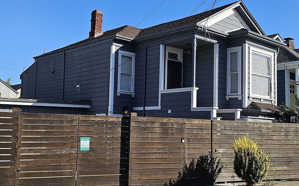 Remodeled Duplex from foundations on up, with secured auto front gate entry, enclosed 2 car driveway & 2 car garage. Ideal owner occupant (almost 10' ceilings throughout) with 2nd unit income! Below 7th Street, within 2 walking blocks of West Oakland BART. Upper owner unit has been remodeled with exquisite kitchen layout & appliances, 3 beds 1 bath (well appointed) Lower unit 2 bed 2 full baths, also a gorgeous kitchen ensemble & baths, with large laundry room! Each unit leads to the tranquil enclosed rear yard for entertaining or private retreat! In-unit laundry hook-ups for both 342 & 344 Peralta, with gas tankless on-demand hot water heater, with a majority of energy efficient dual pane (low-E) windows throughout.