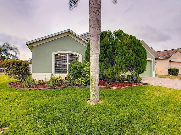 WELL MAINTAINED home in the desirable THE GREEN community. Excellent location to I4 which takes you to both coasts. Minutes away from trendy CHAMPIONSGATE restaurants, supermarkets, POSNER PARK shopping mall, HEART OF FLORIDA hospital and more. This home welcomes you as you enter the WIDE FOYER, has a formal dining room, living room, EAT-IN SPACE in kitchen overlooking the back yard. Floors are TILED IN WET AREAS, MASTER AND 1ST BEDROOMS have WOOD FLOORS, 2nd BEDROOM HAS CARPET. Granite counter tops in kitchen, all appliances are included. Exterior walls have been freshly painted, interior is in good condition. Ceiling fans. Master bath has a GARDEN TUB in addition to a SHOWER STALL, granite counter top. PROPERTY IS ON A CORNER VINYL FENCED LOT, SCREEN PORCH, an additional PATIO WITH PAVERS for extra space. Even a PEACH TREE!! HOA includes LAWN MAINTENANCE, CABLE AND INTERNET (PLEASE VERIFY WITH HOA MANAGEMENT). SOLD AS IS, buyer and buyers' agent to verify measurements, HOA restrictions, etc. All information believed to be accurate but not warranted. Short term rentals are not allowed in The Green. Seller is leaving some furniture for his convenience and it has no monetary value. Please see list on attachments. Community is gated, it offers a community pool, cabana. What are you waiting for? Come and take a look!!!!