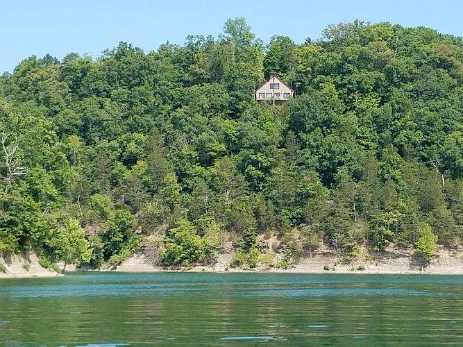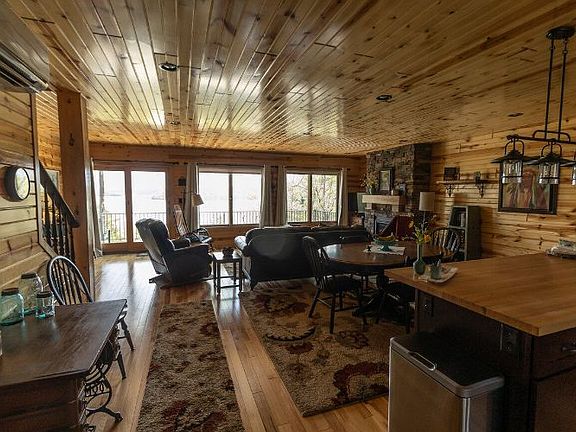 Lake view doesn't get any better than this! This cabin was built in 2017 and is tucked back in the woods overlooking the main lake toward Conley Bottom. The interior of this home is just as breathtaking as the view from the deck. All the interior walls and ceilings are tongue and groove knotty pine. Features an open floor plan with hickory hardwood floors and a stone faced gas fireplace in the living room. The kitchen has solid maple cabinets and an island with a butcher block top. The master bedroom and bath is on the main floor! There's also an additional full bathroom on the main floor with laundry area. The 2nd story is all open with 12' vaulted ceilings and a half bath. Perfect space for guests, kids, a reading nook, game room, etc. Mitsubishi mini split system with 3 tier unit heat pump. Unfinished basement storage with outdoor entrance. There's even an area dedicated for boat camper that has electric and water. Several boat ramps within minutes!
