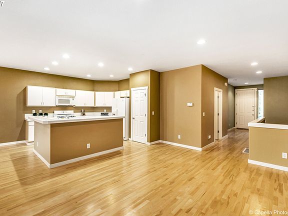 Highly desirable Peterkort location! Awesome duet townhome with a wonderful open floor plan. Spacious great room with hardwood floors, high ceilings and lots of light. Kitchen has pantry and island with breakfast bar. Dining room opens to balcony. Master on main with bath and walk-in closet. Right across from park. Oversized garage with room for storage and access to back patio. Convenient to downtown, Intel & Nike. NO HOA fees!
