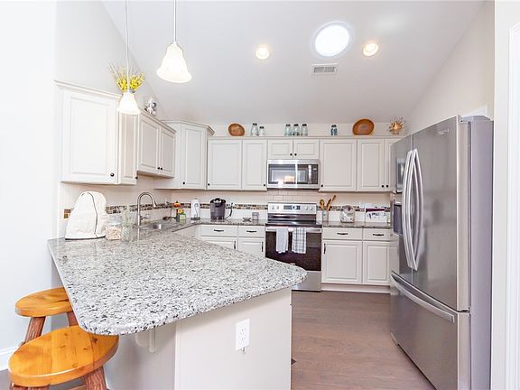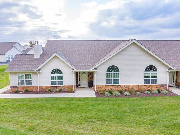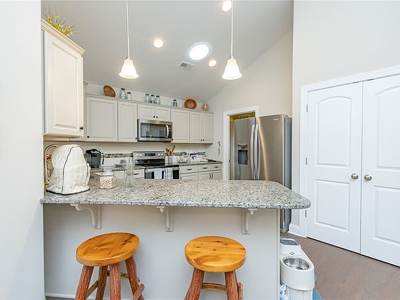Welcome to this gorgeous patio home, full of builder upgrades when built. This is a most desirable rear unit! The original owner has meticulously maintained this home. The exterior features a front porch facing the tree line, sided and stone exterior as well as a paved driveway and turnaround area. The interior boasts hard wood floors, ceramic tile and wall to wall carpeting. The kitchen features high-end cabinets, gleaming granite counter tops, and accented with a tile backsplash. Stainless steel appliances complete the kitchen. Laundry room is just off the kitchen and garage. Kitchen, dining room, living and sun room all feature soaring vaulted ceilings. Gas fireplace compliments the living room. Circle top windows in the living room as well as the primary bedroom. Walk in closet in the primary bedroom, large closets in the other two bedrooms. Association has a club house and other amenities.
