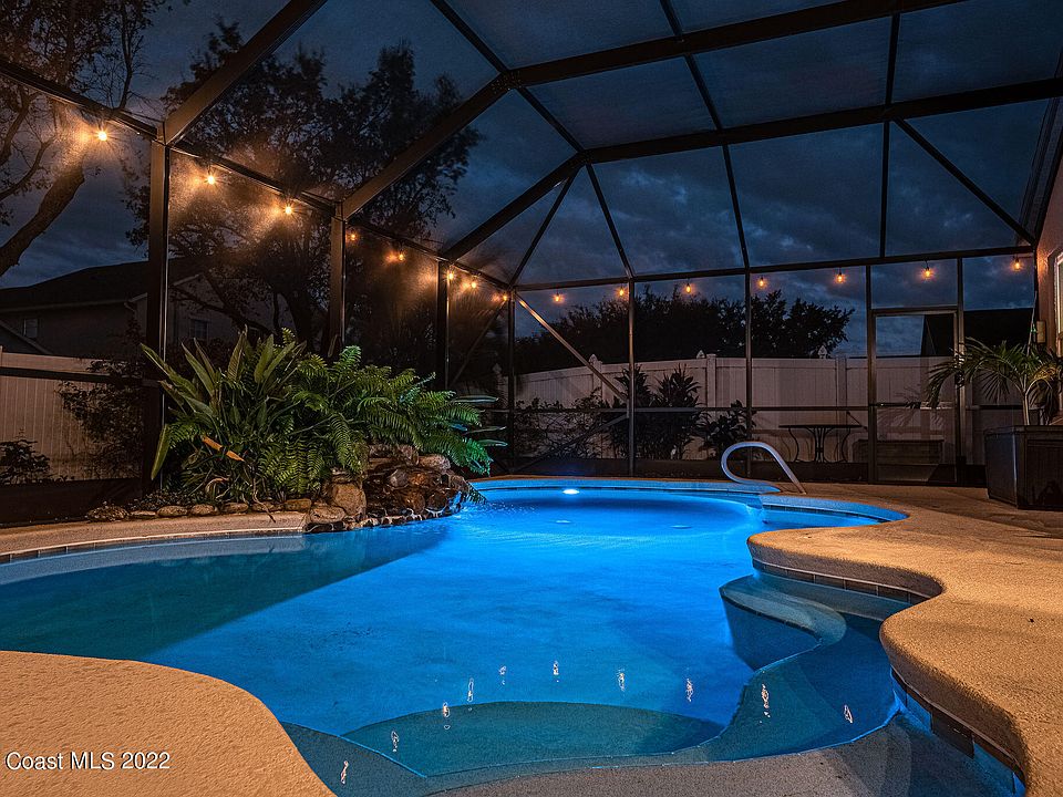- Pool features: Screen Enclosure, Solar Heat, Waterfall