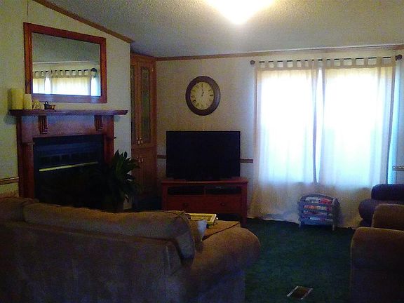 Great location just outside of town! 4/3 double-wide mobile home sits on 6 acres. Approx 2240 sq ft and is a 28x80. Large living room PLUS a den with gas-log fireplace. Formal dining area and spacious kitchen! Split floor plan. Covered back deck is great for outdoor lounging! CH/A is 5 years old.