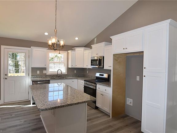 New construction just completed with three bedrooms and two full baths. Shaker-style cabinets throughout the house with granite countertops. Island in the kitchen, stainless steel appliances including a range dishwasher and microwave. Double vanity in primary bath. Vinyl plank flooring throughout the house. Covered front porch, deck, deep lot, and creek behind the house.