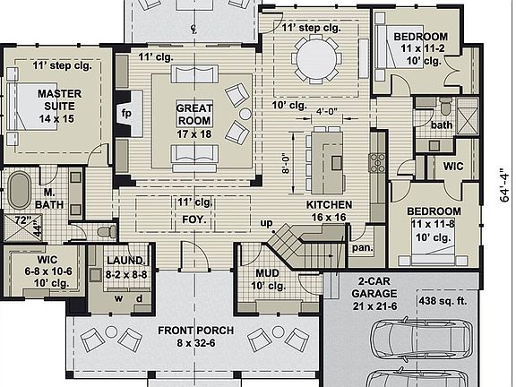 - Attached garage spaces: 2