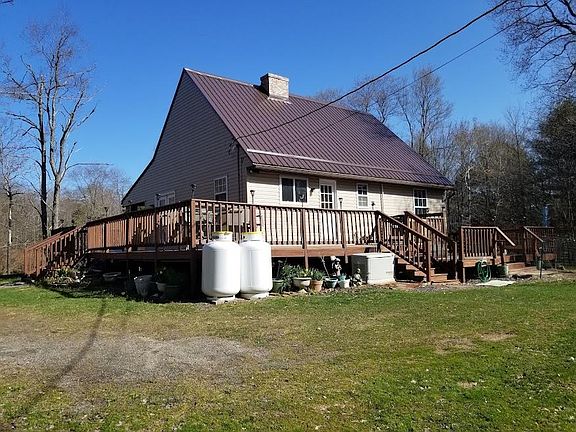 Rise and Shine at this property every day! Snuggled back on a winding driveway on 4 .67+/- acres. This custom-built home offers 3 plus bedrooms.,1-1/4 baths and stone fireplace built in the living room by hand by the current owners with pride. Outside offers a spacious wrap-around deck to enjoy and a detached 2-car oversized garage. Plenty of planting with blueberry bushes, lilacs, Japanese dogwood, and more. Enjoy the wildlife sightings of deer, bear, turkey, and fox. This home also has a generator. Be the second owner of this home this summer. Make an appointment to see this property.