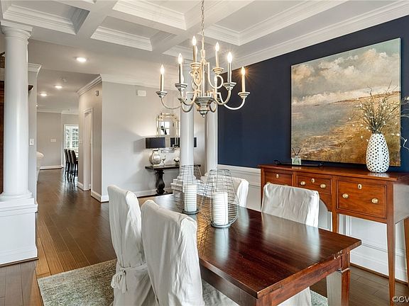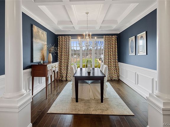 - Description: HW, coffered ceiling, triple crown, chandelier