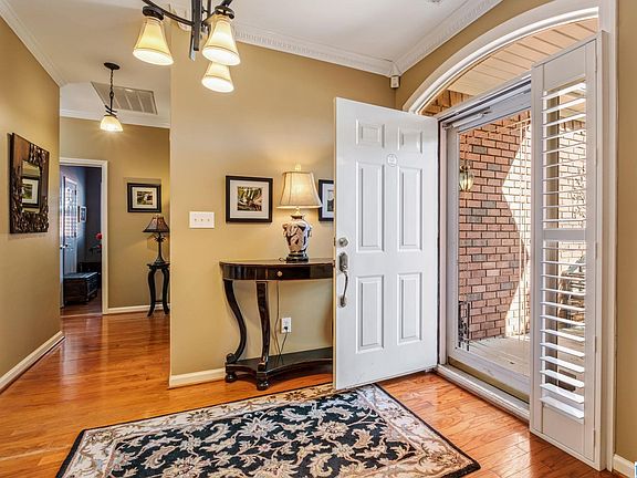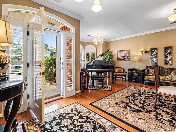 Stunning single-level home nestled by a tranquil private pond in The Landings of Eagle Point! This gem boasts all gleaming hardwood floors, high 9 ft ceilings, and elegant plantation shutters throughout. Revel in the updated baths, including a spacious master bath with luxurious soaking tub, separate vanities, a tiled walk-in shower & dual walk-in closets. With two expansive living areas, includes a family room with a cozy gas fireplace opening to the kitchen and breakfast nook, this home is perfect for gatherings. Enjoy year-round comfort in the large heated & cooled sunroom, which overlooks a sprawling deck & 60 feet of waterfront bliss. Ideally situated near Lee Branch for all your shopping conveniences. Property owners around lake have exclusive rights and ownership. Plus, roof is around 2 years old and adds peace of mind to this already impressive property with lots of new trees planted in back yard! Memberships for the tennis court & pool are separate fee and optional.