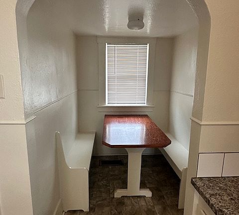 Cute, 1 Bedroom duplex- recently updated. Attached sunroom off the bedroom area makes a great office space. The kitchen has an adorable built in dining nook. 2 large closets off the bathroom/bedroom area, and tons of storage in the basement. 1 car garage available for storage as well. Close to town, walk to your favorite restaurants and stores. 1 year lease. Tenant pays all utilities.