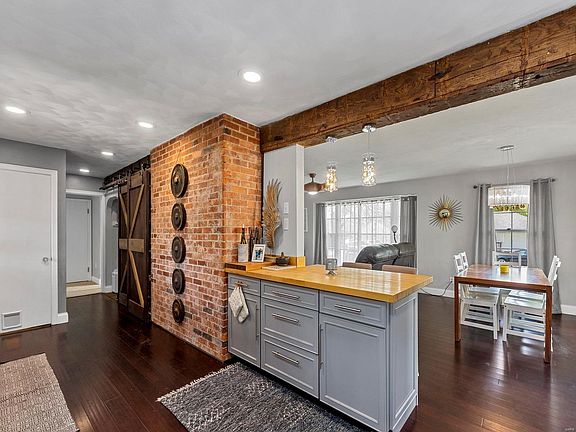 Spacious and Unique.... this 3 bed, 2 bath home is located just a couple blocks off Main Street Columbia! Maintenance free, all brick home has almost 2,000 sq ft of living area on the main floor, 2 fireplaces and brand new flooring throughout most of the home. The recently remodeled kitchen and dining room boast custom cabinetry, granite countertops, tile backsplash, butcher block island and stainless Whirlpool appliances. Also you will find a newly remodeled master bathroom with high end finishes, marble tile and jetted tub. Outside you can sit back and relax on the covered back patio with tile floor or on your 24 x 24 cedar deck complete with built-in seating. This home affords plenty of privacy with a fenced in yard, established vegetation and sits on a double lot. There is a side entry double car garage with workbench and attached shed for plenty of storage. Should you wish to submit an offer please give acceptance deadline of April 18 at 8:00 p.m. Agent Owned