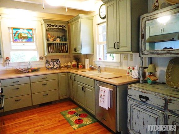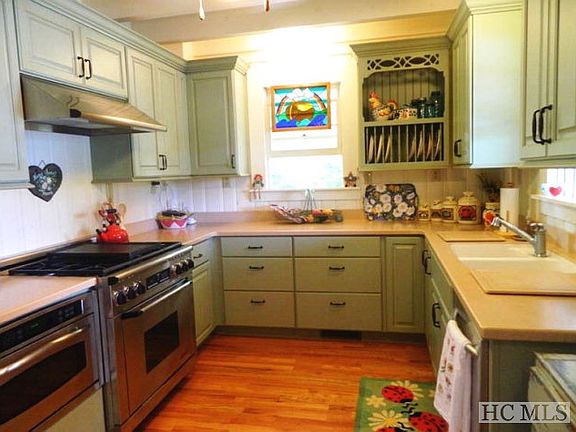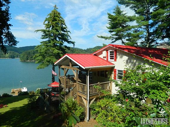 Quintessential Glenville lakefront home with 120 +/- ft of frontage on a deep water main channel lot. Enjoy 180 degree lake & mountain views. Near level lawn, easy walk to private dock. Stone seawall & gardens. Stone walkways with hydrangeas, rhododendron & azaleas. Home totally renovated in 2008. Main level: Huge stone fireplace with gas logs in great room, cathedral ceiling with exposed beams, painted pine walls, oak floors, master suite, guest room, bathroom, Custom kitchen: Dacor dual fuel 6 gas burner cook top with electric oven, Advantum microwave, stainless steel appliances, custom cabinets, Corian countertops. Metal roof.Property has a nice parking deck. , screened porch spanning whole back of home & large decks. Lower level: 2nd master suite & den. Metal roof, parking deck. The custom kitchen features: Dacor dual fuel 6 gas burner cook top with electric oven, Advantum microwave, stainless steel appliances, custom cabinets, Corian countertops. Exterior of the home has been freshly painted.