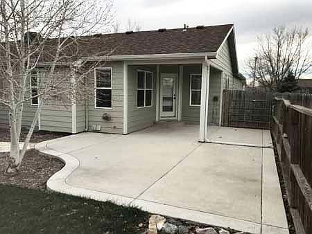 Available Now -- NO STUDENTS -- Gorgeous ranch-style 3 bedroom 2 bath home! Located in Wellington with a quick commute to Fort Collins or Cheyenne! This home features espresso hardwood floors and many custom upgrades. Spacious living room with vaulted ceiling and a gas fireplace. Lovely kitchen with granite counter tops, contrasting white cabinets, huge pantry, and adjacent dining area with a large window. The large primary suite has a walk-in closet with an attached bathroom featuring double sinks and granite countertops. Down the hall are 2 more bedrooms with another full bath. Other amenities include 2-car oversized attached garage, central A/C, unfinished basement with tons of storage and covered patio with large fenced backyard.