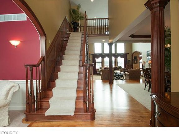 Welcome to this stunning custom built home by KNL, located in the desirable Mayfair East Development. Upon arrival you will be greeted by a beautiful brick exterior, lush landscaping & expansive driveway. Once inside, the attention to detail offers beautiful built-ins, custom cabinetry, rich woodwork, floor to ceiling windows and lots of warmth and natural lighting. The open & airy floor plan is a pleasure for entertaining your many guests. The kitchen boasts custom built birch cabinets, hardwood flooring, stainless steel appliances, granite counter tops and a large seated island w/ bar. A grand great room flows from the kitchen into an elegant pillared dining rm then into an inviting living rm (or office). Retreat to the First floor master & glamour bath. The second floor offers 3 additional bedrooms PLUS a large bonus room (OR 5th bedroom). The home wouldn't be complete without a Fabulous finished Walk-Out Lower Level, offering approximately 1500 add SF w/ a home office & bar with billiard area. You won't want to miss out on incredible summer fun from your own backyard! Complete with an in-ground salt water pool, beautiful rock waterfall and extensive patio with fire-pit, surrounded by an elegant fence. Plus much more!