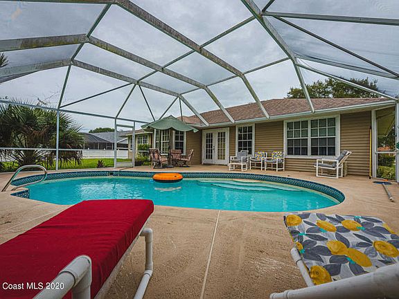 Sweet hometown charmer on 1/2 Acre in highly desirable Windover Farms with winding roads, manicured landscape mixed with scattered preserves & ponds. THIS POOL HOME HAS A SOUTHERN STYLE FRONT PORCH & A DREAMY COUNTRY ATMOSPHERE WHERE LIGHTS FILTER THROUGH THE SW EXPOSED HOME. Kitchen, breakfast nook & family room combo overlooks the screened pool & preserve. Owners suite w a built-in-seating in the window niche, double sinks, shower, soaking tub, WI closet. Formal dining & a large flex room welcomes you as you enter the home. Spacious guest bedroom wing w plenty of closet space. All windows have shutters. Community w playground, basketball courts, tennis courts, indoor racquetball courts & large pavilion. Close to Eastern Florida State College, Shopping, Restaurants & 20 min to the beaches.