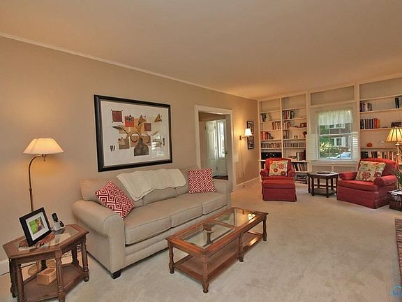 Quality 2 sty; Classic center hall; LR w/gas fireplace, Wall of book shelves; DR w/glass doors; Large kitchen: All appliances stay! Full bath; 4 beds up; lower level rec room w/storage area; Patio overlooks well maintained yard; fenced; Call to see great property! Walk to Ottawa Hill schools, U of Toledo, least expensive house on the street
