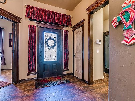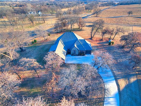 Beautiful 3 Bed, Plus Study home is located just off HWY 62 & KP Turnpike/Hwy 9 allowing easy access to OKC, Norman etc. Situated on a partially wooded lot you'll quickly fall in love! Open concept living, kitchen area offers stone fireplace, crown molding, granite counter tops, beautiful wood stain, breakfast bar w/stone accent wall, SS appliances & dining area. The owners suite also has crown molding w/ceiling fan & full bath featuring double vanities, jetted tub, walk in shower & walk in closet. The study has glass french doors, built-in desk w/distressed look paint & bookcase. The secondary bedrooms share a Jack & Jill bathroom w/separate vanities. There is also a good size half bath as well as a great bonus room that could be used for game room, media room etc...! With acceptance purchase price, seller is willing to help with some of buyers closing costs.