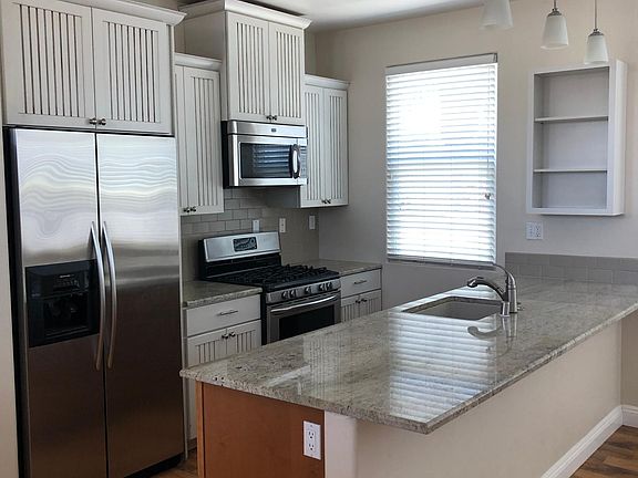 Great location and beautiful home with attached two-car garage that is walking distance to downtown Carlsbad Village and the beach. Recently constructed in 2012, this home has a custom kitchen with wood cabinets, stainless steel appliances, and granite countertops. Flooring is high-quality faux wood laminate throughout the living and kitchen with carpet in the bedrooms and slate tile in the entry and bathrooms. This is a two-story home with one bedroom and bathroom upstairs and the second bedroom and bathroom downstairs. Both rooms have walk-in closets. The attached two-car garage is rare for homes in and near Carlsbad Village and houses the washing machine and dryer. There is a small side-yard with faux grass turf. The home is set off the street, behind a private residence that is accessed by a private driveway. Tenant pays for Water.
