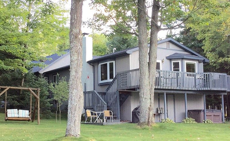 This 3 bedroom home sits on 2 Lakefront Lots with 170' of sandy beach. Home features an open floor plan, lots of natural light and views of lake. Partially finished lower level features a family/workout room, sauna, 1/2 bath, a bedroom, laundry, along with a woodstove, and a short walkout to covered outdoor patio with hot tub. Also included is a 179X140X40 lakefront lot with power pole for storage of toys or sale. Enjoy all northern Michigan has to offer with access to State bike/snowmobile trail system only 1 mile away and just a 30 minute drive to Gaylord, Petoskey and the Mackinaw Bridge.30' of dock and storage barn are also included.Since 2010 Complete re-model included:New custom kitchen and BathNew wireing and 200 amp serviceNew roof with complete ice and snow underlayment on entire roofNew R48 attic insulation with R19 in walls28X24 Garage with bonus storage room above24X8 cement floor storage area in crawlspaceAluminum clad entry doorsSimonton thermal windowsPremium Vinyl siding and aluminum trim and gutters for maintaince free exterior
