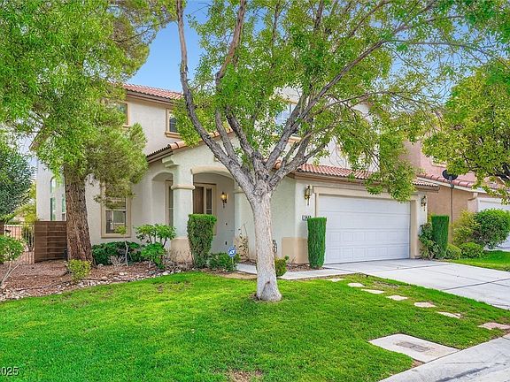 Welcome to this spacious and inviting 5-bedroom residence, perfectly situated in a charming community just north of Summerlin. Step inside to a two-story entryway that leads to a practical and well-designed layout. The home offers a convenient downstairs bedroom with a full bath, ideal for guests. The kitchen features granite countertops, stainless steel appliances, and plenty of storage. All appliances are included, making it move-in ready. The adjoining family room with a cozy fireplace provides the perfect setting for relaxation and gatherings. Situated on a generous corner lot, the property showcases a well-maintained yard, offering both curb appeal and outdoor enjoyment. Residents of this community enjoy access to a private center with a pool, spa, gym, and clubhouse, enhancing the lifestyle experience. Conveniently located just minutes from Lone Mountain, Majestic Park, and nearby shopping , this home blends comfort, convenience, and community living.