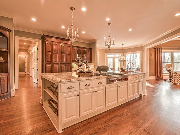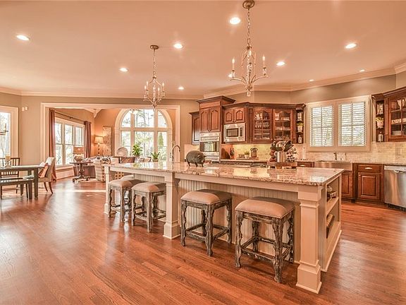- Kitchen Features: Breakfast Bar, Stone Counters, Kitchen Island, Pantry Walk-In, Breakfast Room, Cabinets Other, Keeping Room
