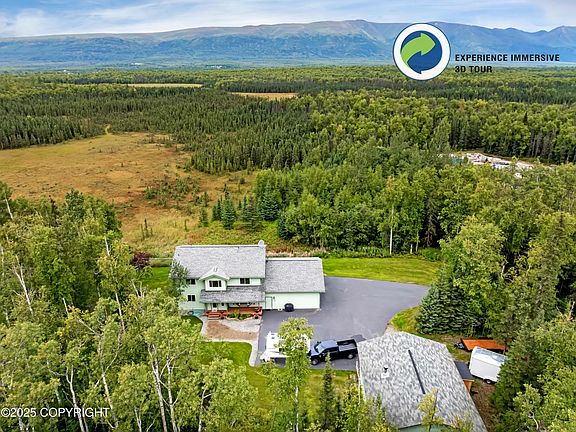 New to the 2025 Mat-Su Valley market, is this amazing two story 2178 SqFt home & shop, with mountain views, on 5.01 acres. You won't want to miss this location, as the property is situated in a sought after area. Extremely well maintained, the home was built with a 5* energy rating. Along with an 896 SqFt attached & heated garage, there is a detached 1,008 SqFt shop. SEE MORE:Please note, this property has an undisclosed address. Qualified buyers may reach out to their real estate professional to set up an appointment. Approximate location is on Seldon, between Lucille St and Church Rd. As you arrive at the property, you'll notice how secluded and parklike the setting is, while still being in a prime location. There is a privacy fence at the street, along with a fenced in back yard looking toward Hatcher Pass. As you enter the home, you'll be greeted with a spacious entry that leads to the living space with tall ceilings and extra large windows looking out to the mountain views. Just imagine having your morning coffee and watching wildlife from here! The access to the back deck and fenced yard is also from here. On this main level is your eat-in kitchen with beautiful granite counter tops, wood cabinetry, SS appliances and a pantry. There is also a window bar to the living space, so you can still enjoy the view and connect with others while in the kitchen. The spacious owners suite, on the main level, has two closets, corner built-in shelving, a clawfoot soaker tub, separate standing shower, sink and water closet. You'll have access to the laundry area from here, too. Don't forget the large bedroom window that allows viewing of those beautiful mountains! On the second level, you'll find an amazing loft space that can have multiple uses, such as an office, playroom, family room, etc. The other two bedrooms and a full bath is on this level, as well. There is easy maintenance laminate flooring throughout the home, with carpet on the stairs and in the under the stair closet. The oversized attached heated garage is accessed from the kitchen, and has a quarter bath (water closet), utility room, floor drain, and a utility sink, including a pet door to the fenced back yard. The detached 1,008 SqFt shop is currently heated by a wood stove, however, has been plumbed for gas. It also has a dedicated interior pet area and an exterior fenced space, there is also a lean-to wood shed. Subdivision covenants allow for up to 3 horses, buyer to verify the information, and confirm this property is suitable for their needs and/or wants. ::Negotiable items:: Generator (2016) Refrigerator (2016) Washer/Dryer (2016) Vivint security system ::Other items to note:: Large living room window replaced in 2024 Dishwasher replaced in 2020 New wiring to shop & plumbed for gas in 2022 Home/Shop roof cleaned of moss & treated in 2024 Replaced shed roof in 2024 Refinished decks in 2024 Repainted home/shop trim in 2024 Paved driveway resealed in 2021 This is an incredible property, reach out to your real estate professional for more information!
